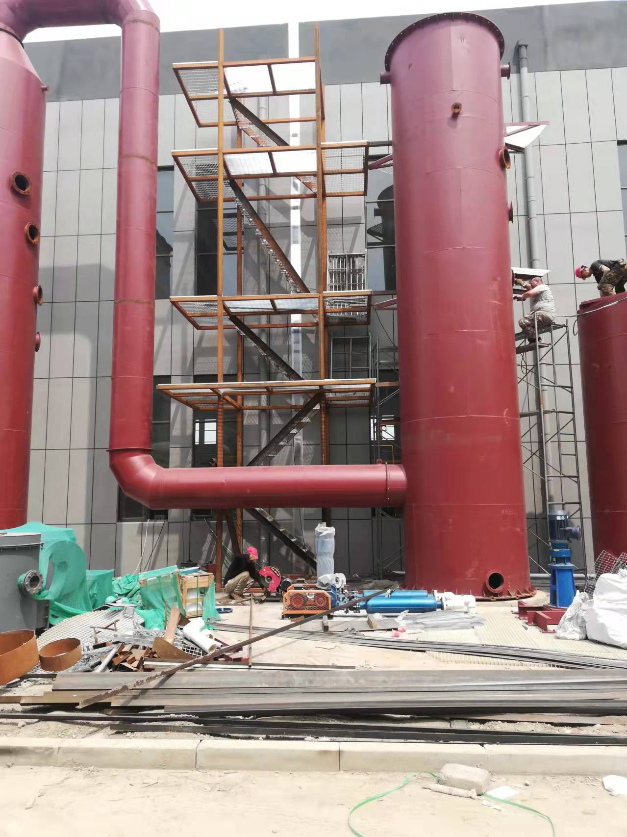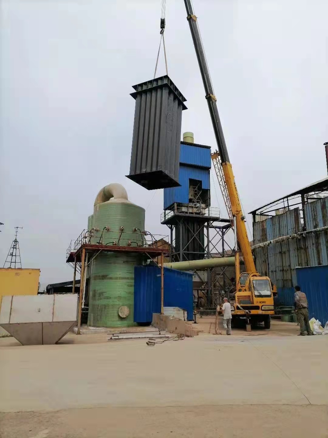 里,含塵廢氣與水霧充分混合洗滌、中和反應(yīng)(水里面補(bǔ)充酸堿時(shí))
