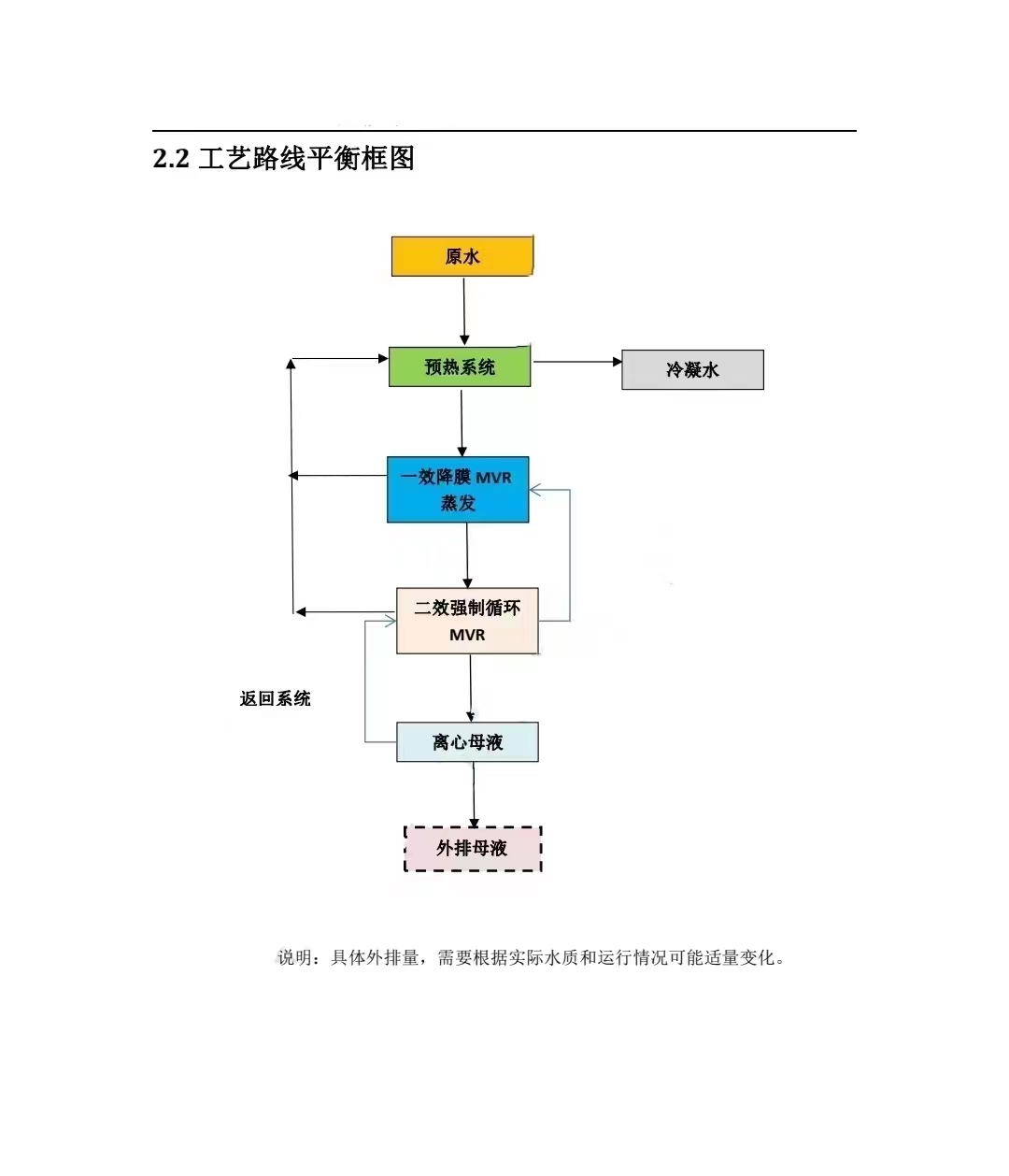 我公司根據(jù)貴公司提供的資料,進(jìn)行相關(guān)的計(jì)算和設(shè)計(jì)工作,確定相關(guān)設(shè)備的參數(shù)和蒸發(fā)器的類型。本方案的宗旨是用低的運(yùn)行成本以及好的解決方案來達(dá)到蒸發(fā)結(jié)晶含鹽溶液的目的。工藝流程采用MVR耦合連續(xù)蒸發(fā)結(jié)晶系統(tǒng),利用蒸汽壓縮機(jī)壓縮二次蒸汽進(jìn)行蒸發(fā)結(jié)晶,從廢水中回收鹽類晶體,冷凝水達(dá)標(biāo)回收利用。